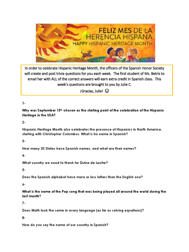 Hispanic Heritage Month Trivia Questions : Johnson to declare national hispanic heritage week for the week including the 15th and 16th of september.. Practices followed by the people of a particular cultural group. Everyday is hispanic heritage month. Craig hudson/for the washington post. Test your knowledge of a few facts related to u.s. May 5th to june 5th.